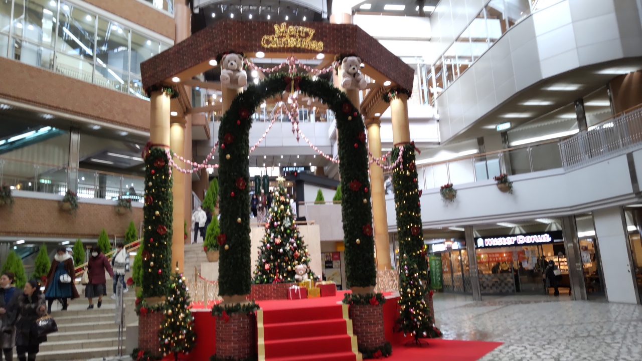 ソリオは阪急宝塚駅の前にあるショッピングモールです。2Fには阪急百貨店が入店しています。GFメインプラザに大きなクリスマスツリーがありました。キャンディースティックやテディベアが飾られた楽しいツリーです。数組の親子が記念撮影をしていました。11月12日~12月25日まで飾られています。