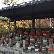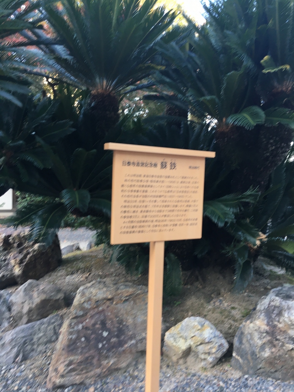 境内に入ると大きな社務所のような建物があって砂利道の駐車場がありました。道を辿って行くと石に囲まれた場所に蘇鉄があり南国ぽい感じでした。大玄関と唐門の建物が見事で、庭には赤い前掛けをした小さな石仏が並んでいました。