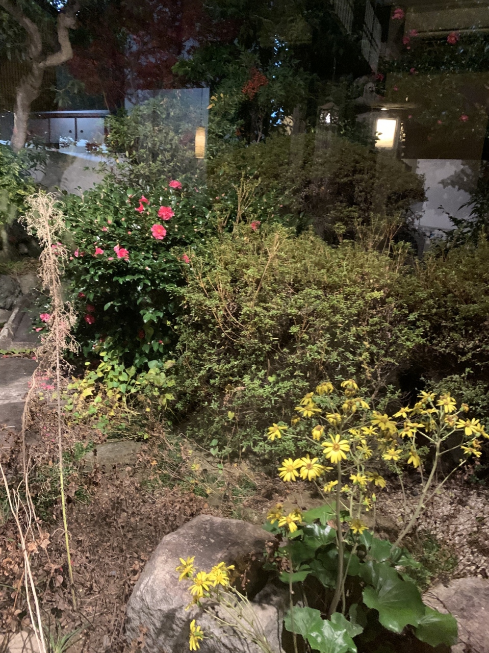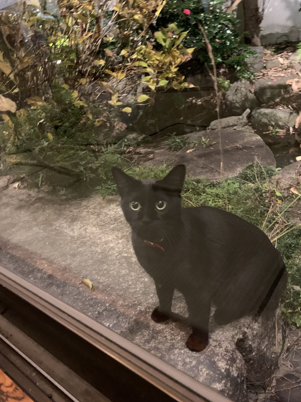 お食事中に フラッとニャンコも 中庭へ 現れました。