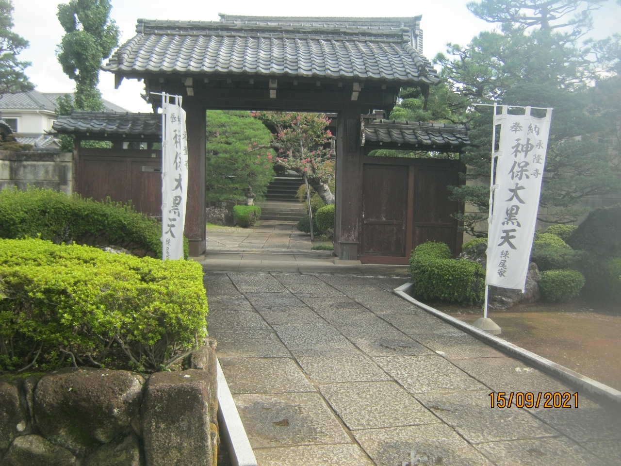 この永隆寺は京王線千歳烏山駅から北に20分程度ある烏山寺町の中にある寺です。寺町通りの東のエリアにあります。法華宗の寺として17世紀前半に神田で創建されました。山門の脇に神保大黒天ののぼりがあります。ただ境内では大黒天は見つかりませんでした。本堂は歴史を感じさせるものです。