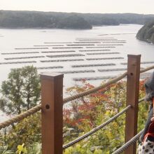 的矢湾は、ブランド牡蠣である、的矢牡蠣の養殖をしている場所です。湾内には、たくさんの牡蠣の養殖の筏が並んでいます。写真は、的矢牡蠣を美味しく食べさせてくれる、いかだ荘山上からの的矢湾の風景です。牡蠣の旬になれば、ここに的矢牡蠣を食べに来て、佐藤養殖場で、的矢牡蠣を買って帰ります。