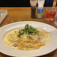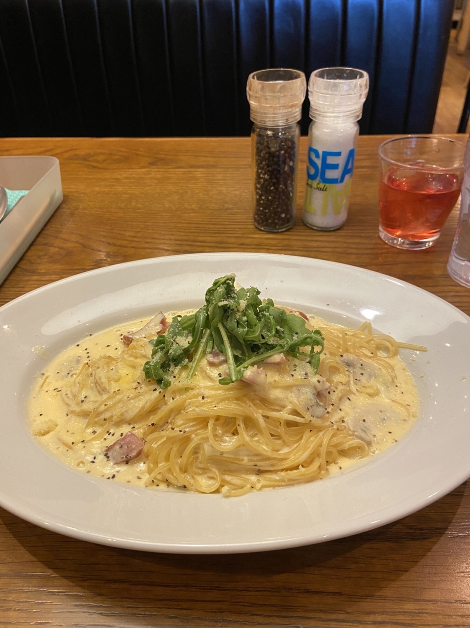 御茶ノ水駅前からほど近いイタリアンレストランです。平日のランチで伺いました。近隣に勤務する方なら割引がある模様。パスタは大盛り無料、カルボナーラをいただきました。前菜として蒸し野菜がついてくるのが嬉しいです。