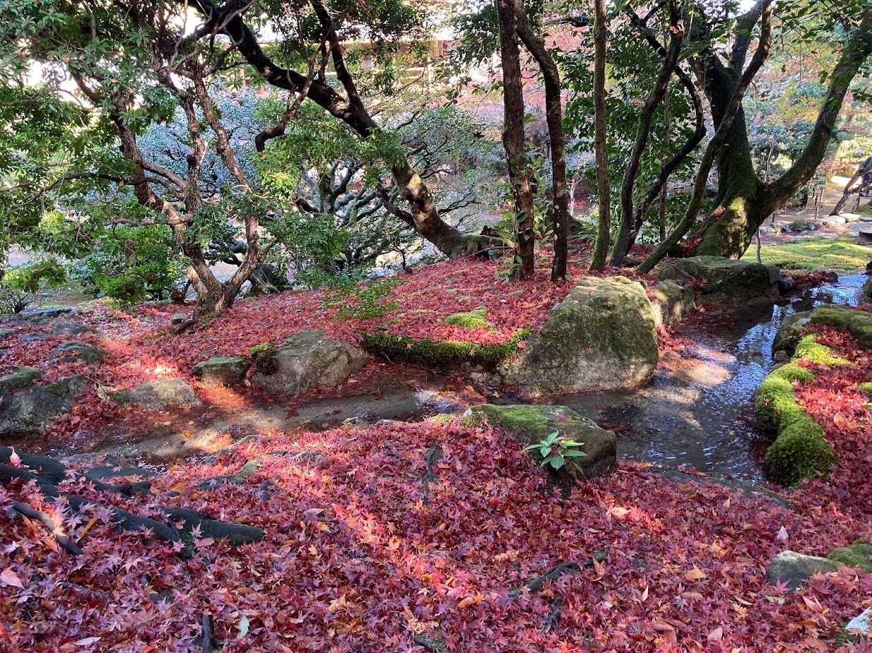 さらには、庭園を散策して、赤く染まる敷もみじも堪能できました。