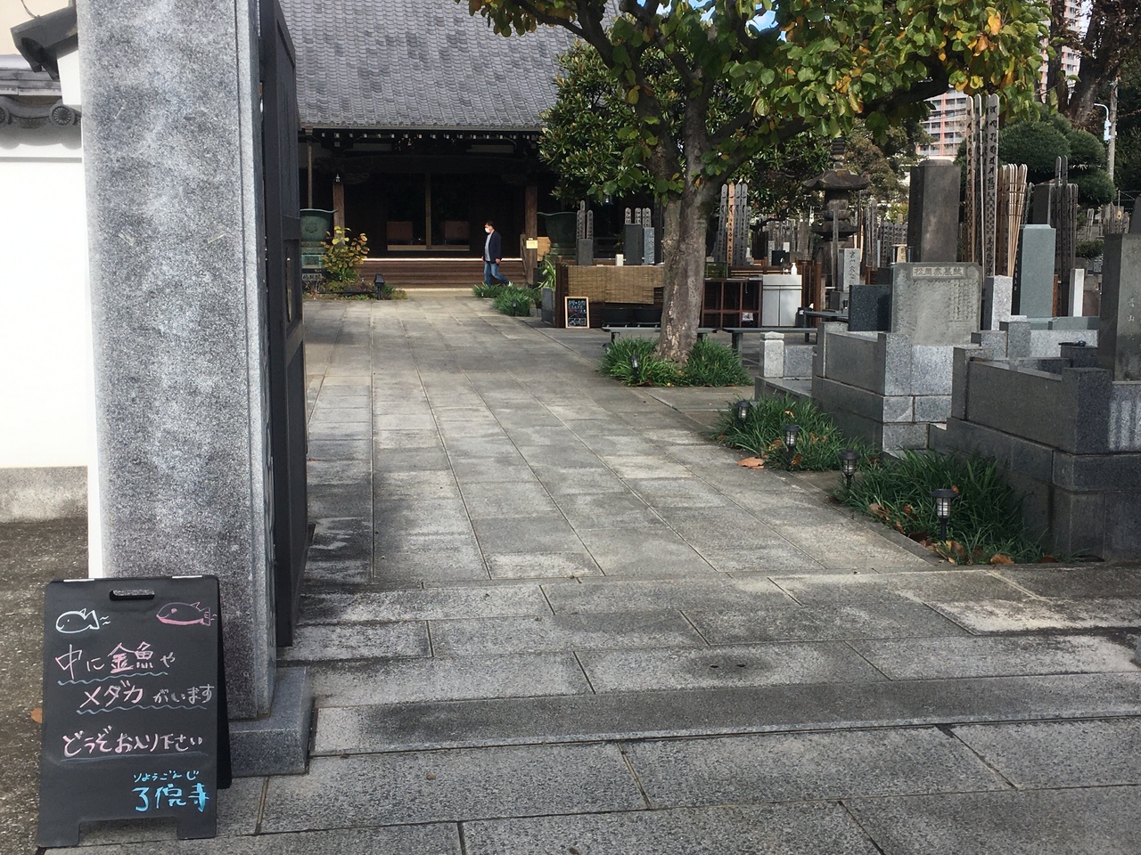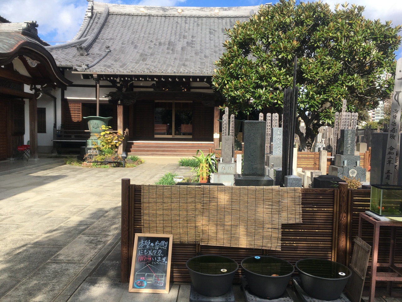 JR日暮里駅から徒歩で10分ほどです。谷中霊園のすぐ西側にあります。1624年創建、開山は日安尼、天台宗の寺院です。関東大震災の大勢の被災者を本堂に収容し、しばらくの間生活を支援したことはよく知られています。また「東京都養育院慰霊碑」が谷中霊園の区画にあります。境内にはメダカを多数飼っており、おうち時間支援として子供に配布してます。「Sorry, 御朱印はありませんが、メダカはいます!」というユーモアたっぷりの看板が出ていました笑。