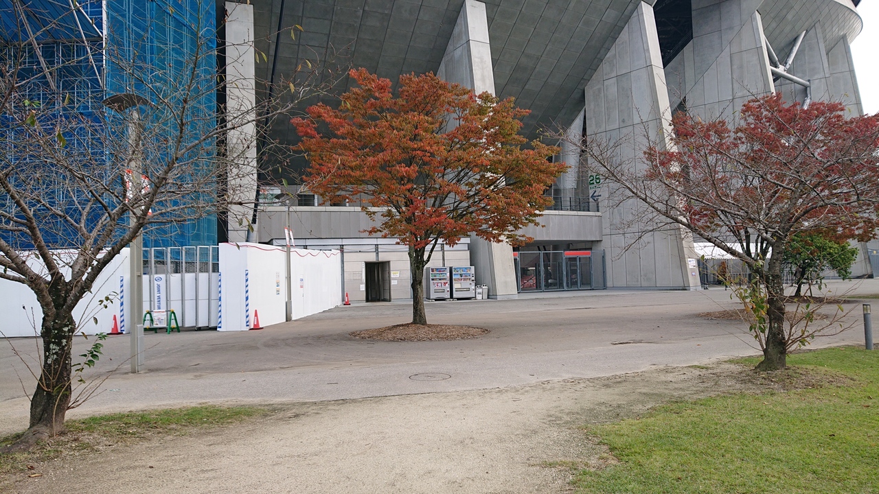 豊田市駅の側から、矢作川に架かる豊田大橋を渡った対岸付近に立地する、豊田スタジアムを核施設とする公園です。10月下旬の平日の午後の時間帯に訪問しました。今回の訪問で印象に残ったのは、園内の木の紅葉。さりげなく綺麗でした。