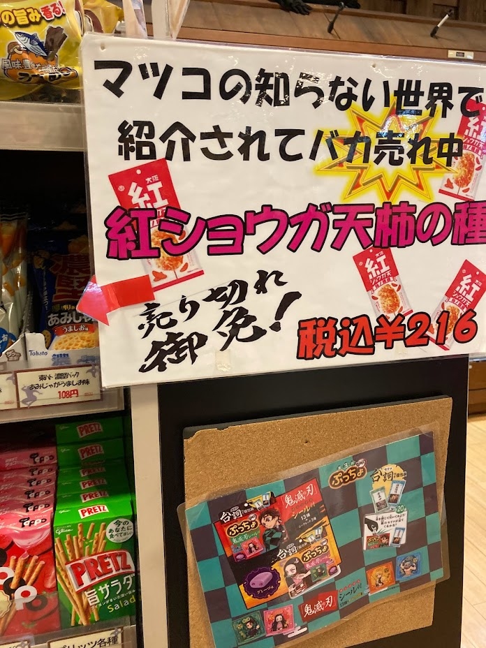 スペースは広くはありませんが、スナックなども品揃えが一工夫、ひと笑いあってついつい買ってしまいます。