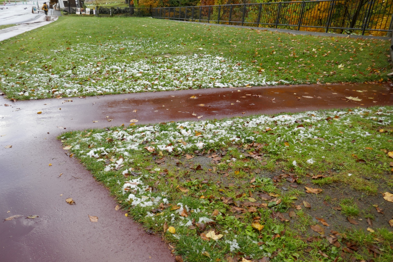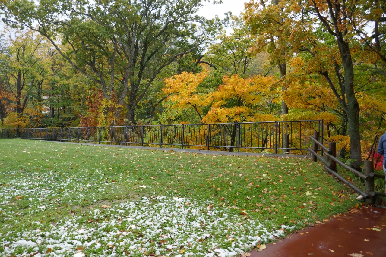 雪が降った後の道で歩きにくかったですが、紅葉の時期で雪の白と入交り美しかったです。