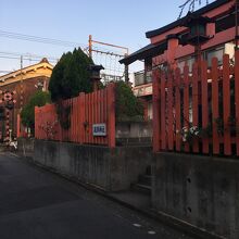阪堺電車高須神社駅から徒歩数秒のアクセスが良い場所にあって前には公園がありました。境内は狭く赤い社殿が目立ち、裏側には行って見ると末社のような神社がいくつか並んでいました。神社を囲むものも赤い色味でした。