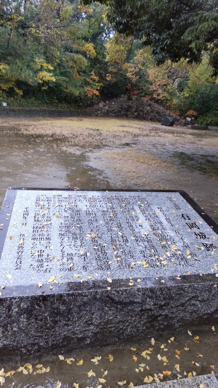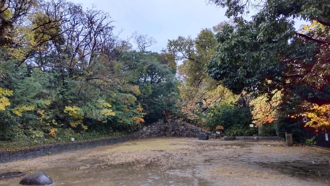 今は公園として整備され石垣が残っています。駅の反対側にはイオンがあるので石垣との対比が面白いと思いました。