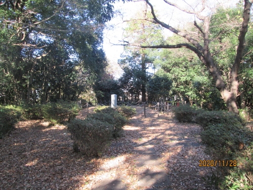 花輪城跡は戦国時代、小金城主高城氏に属した城の1つ。空堀跡、犬走り跡が確認されたほかには何もありません。城壁も、天主閣も無く公園と成っています。再開発で住宅地になるよりは公園で残してくれて良かったと思います。