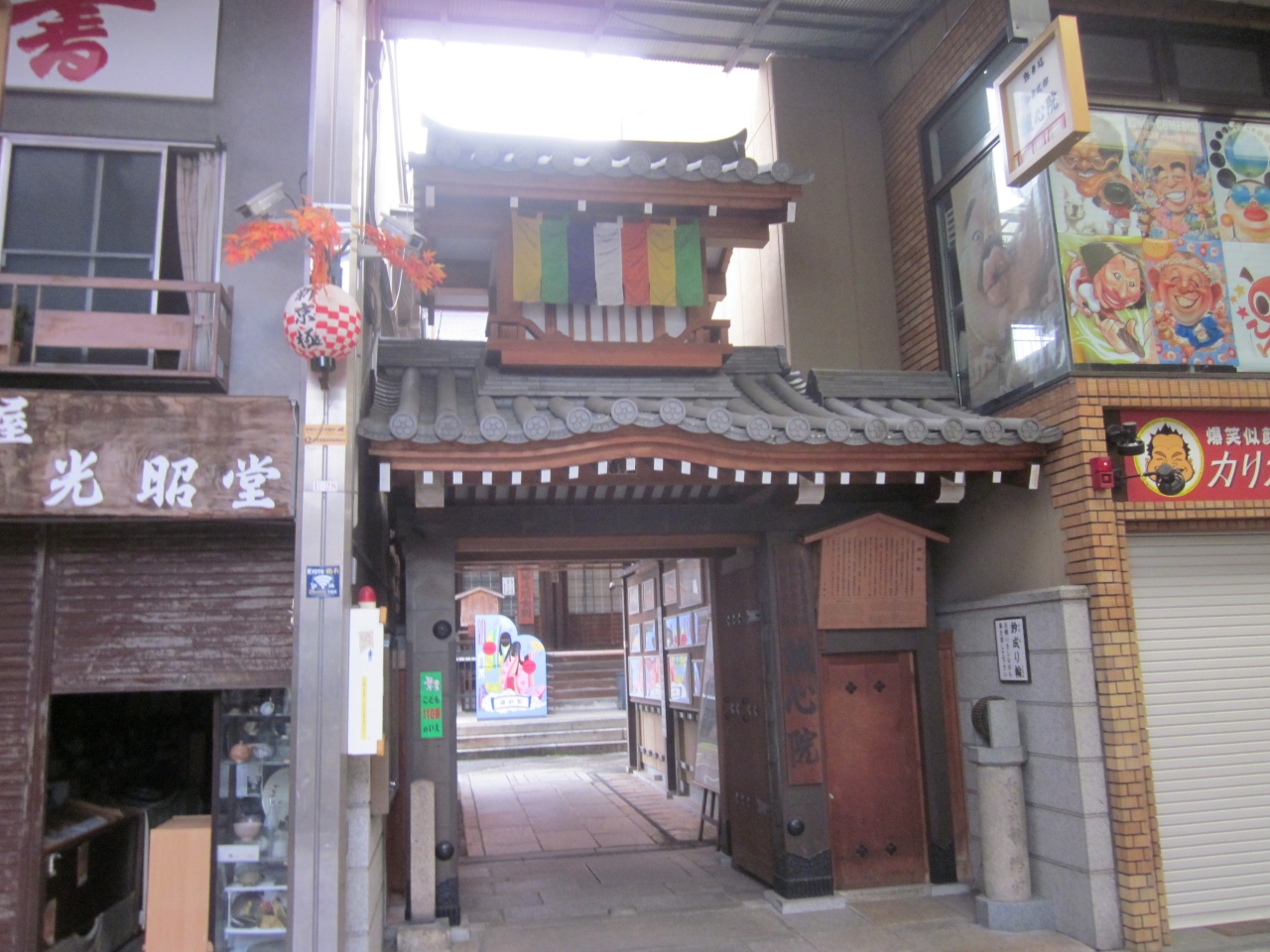 寺町商店街、新京極通りを散策していた際に、誠心院を見かけました。商店街には、誠心院のように、お店とお店の間に、急にお寺などが現れるので、歩いていて面白いですよね。