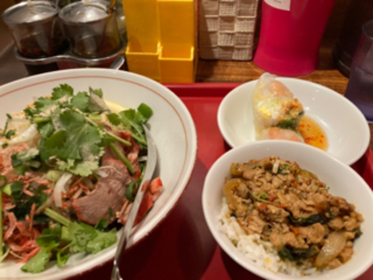 タイの汁なし麺のセットを食べましたが、屋台風で良いです。