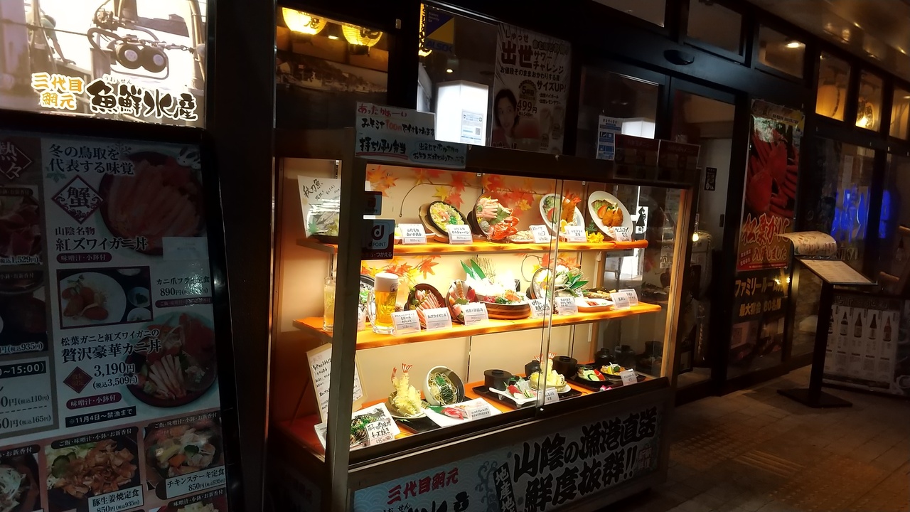 鳥取駅周辺は飲食店の選択肢が少なく、駅周辺を散策してやっと入ったお店。旅先でしか食べられない美味しいご飯を探していました。今日のお勧めメニューからズワイガニのグラタン、その他お寿司、うどんを注文。