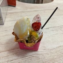 福島県郊外にある本店です。アクセスはレンタカー等ないとキビシイでしょう。ただし福島駅前のS-PALにサテライト店舗があるので手軽に行くんだったらそっちがいいです。さてこちらジェラートシングル360円でダブルは460円となり、ダブルがお得ですがその分お腹には来ますので要注意。