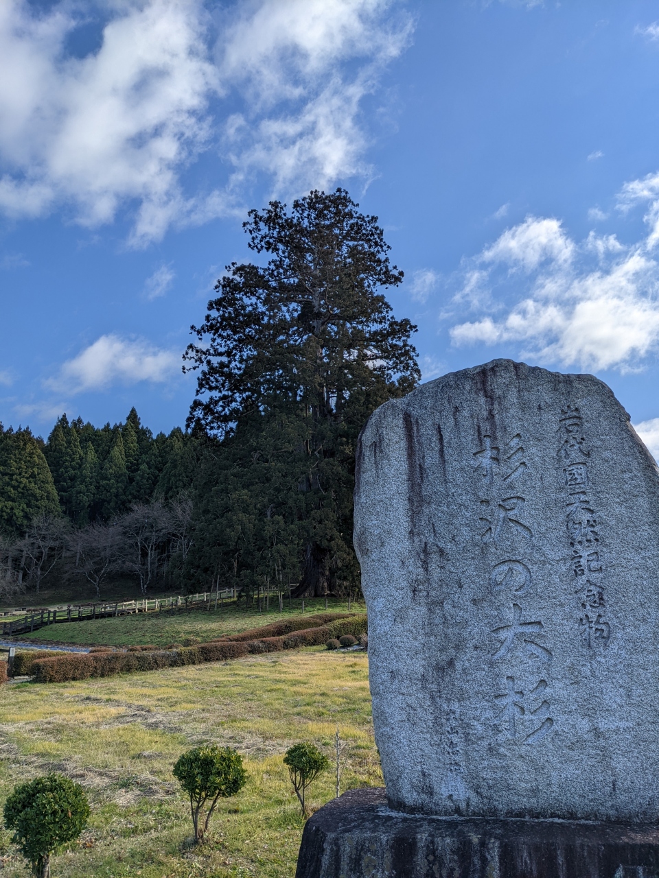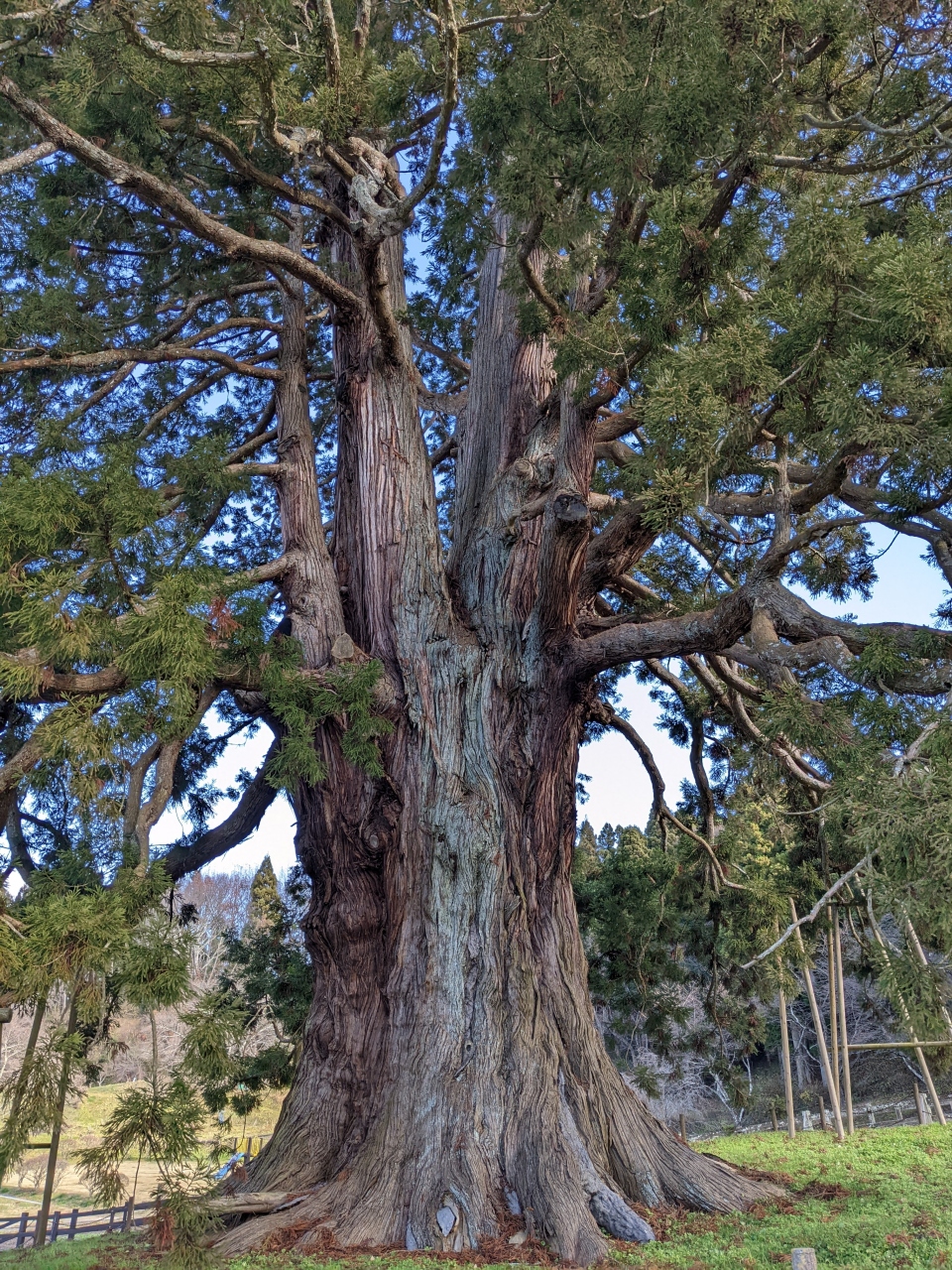 福島県一の巨木ということで、どうしても見たくなり行ってきました。二本松市の外れの方にあって、アクセスはよくないです。(福島市内からレンタカーで1時間ちょっとかかりました。)よくぞ人家のすぐ近くにあってこれほどの巨木が切られずに残ったのはすごいことです。縄文杉のように奇形ではなくまっすぐのきれいな杉です。美しさは日本でも指折りではないかしらん。