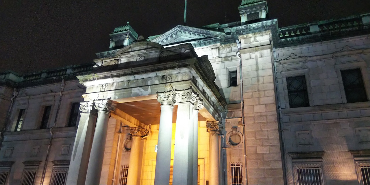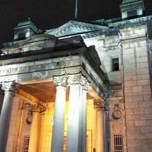 日本銀行大阪支店は中之島の大阪市役所の向かい側にあります。大阪のメインストリートの御堂筋沿いにあり、夜はちょっとライトアップされていました。冬には御堂筋や大阪市役所付近もイルミネーションが飾られるので、えぇ感じになっていました。