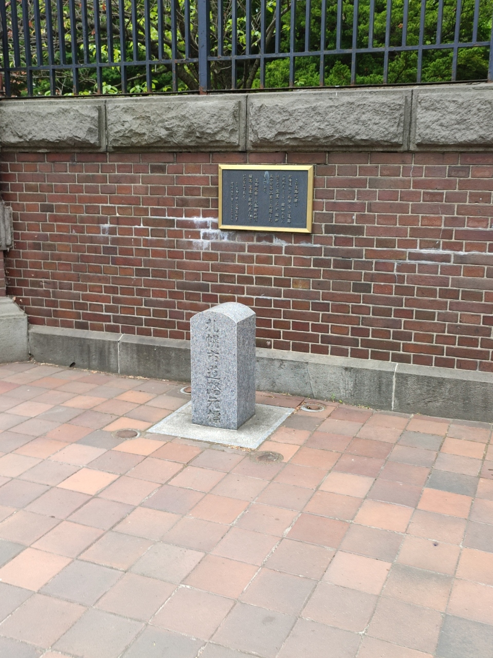 赤れんが庁舎のメインの出入り口である東側の出入り口近くにありますが、地味ですので素通りする人も多いです。大正時代の道路法によって国道4号線の終点がこちらにに定められたことを表しています。赤れんが庁舎見学ついでにさらっと見るだけで十分です。