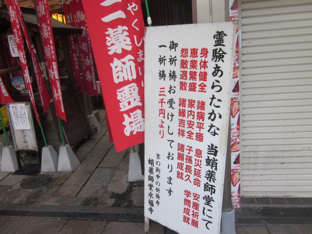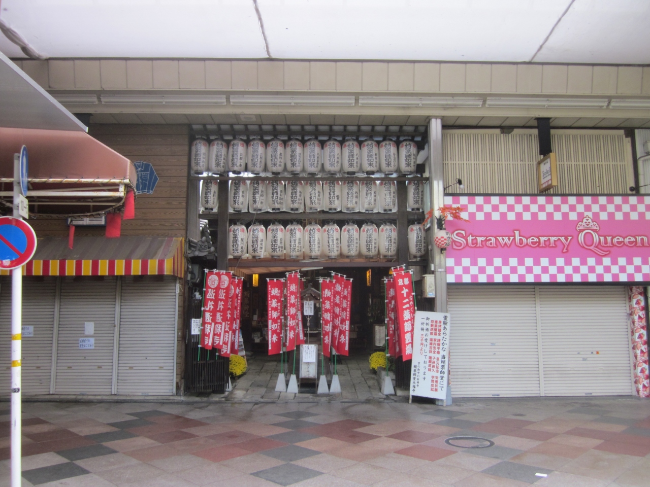 友人と京都に買い物に来ていて、寺町商店街を歩いていた際に、蛸薬師堂を見かけました。商店街のお店とお店の間にあるので、面白い立地ですね。