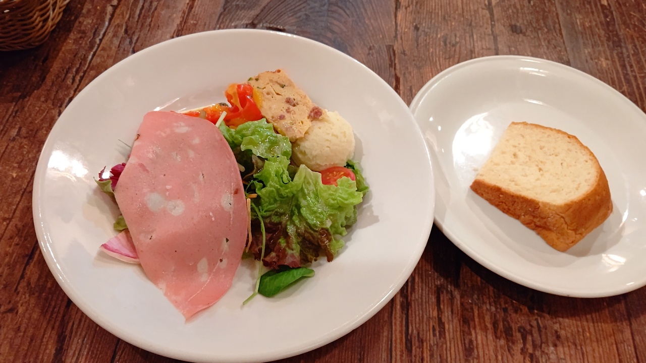 前菜、パン、ラザニア、飲み物で1100円です。前菜もラザニアもおいしかったです。