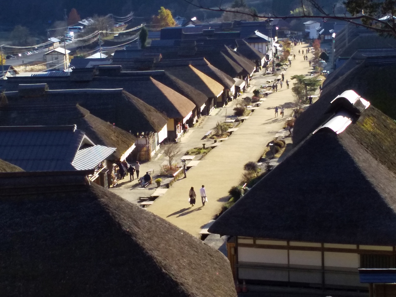 アクセスがあまりよくないので、レンタカーで行きました。 水曜日だったので食品館はお休みなので駐車場は無料です。 ちょっと歩きますが、見晴らし台の方から大内宿に入っていきます。 散策が終わった最後に、見晴らし台からの有名な景色を堪能して、駐車場に戻りました。
