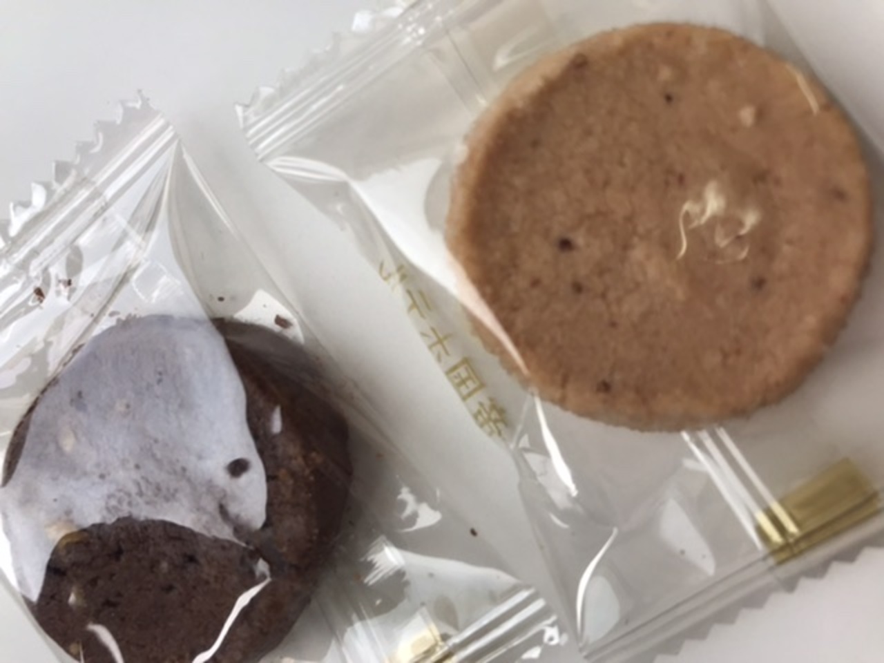 ぱっと見なんの変哲もない丸形のプレーンとココアのクッキー。一旦口に入れ味わってみるとプレーンにはかすかなフランボワーズと思われる風味が現れる。
