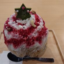 12月上旬に訪問しました。そしてクリスマス氷(ローゼル/レアチーズ /和紅茶、のコンビ)を注文しました。店内には、クリスマス感のある装飾がなされ、良い雰囲気でした。そして、かき氷も、ローゼル(ハイビスカスティーの原料)を用いたシロップの赤と、クッキーが、クリスマスらしさを演出しており、味に加え、ビジュアル面でも楽しめました。なお、氷内に埋められた、洋梨のコンポートも、良かったです。
