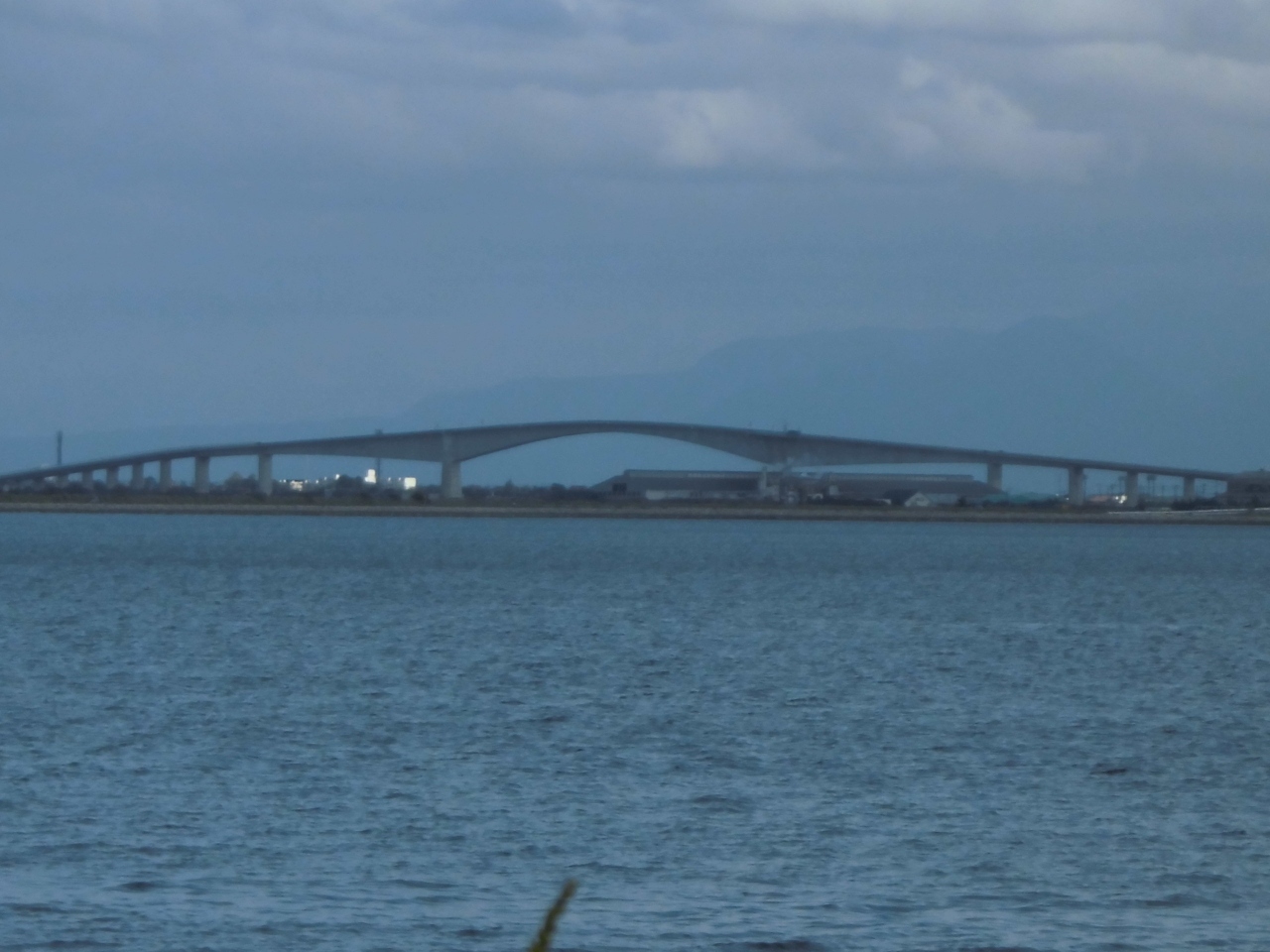 鳥取と島根にまたがる湖です。境港から松江に移動する際に、江島大橋を渡って通過しました。実は中海には湖上に道路がありそこを車で移動するという面白いルートを通りました。橋ではないのに湖の上を走るというのはなかなかできることではありません。