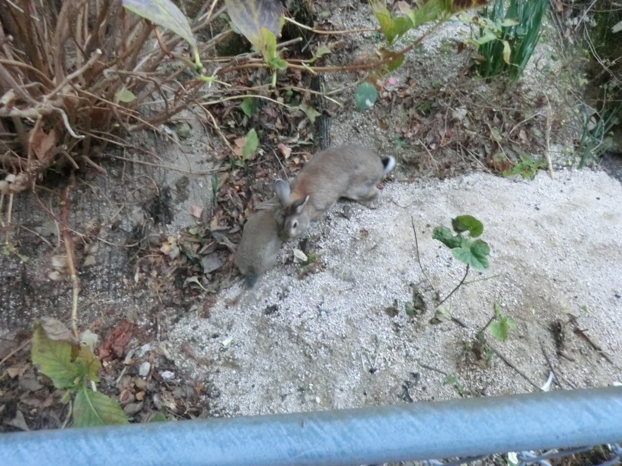 フェリーで大久野島に渡り、まず毒ガス資料館見学を見学、施設から出るとウサギが出てくる。休暇村大久野島まで行く途中にもたくさんのウサギと戯れることができた。