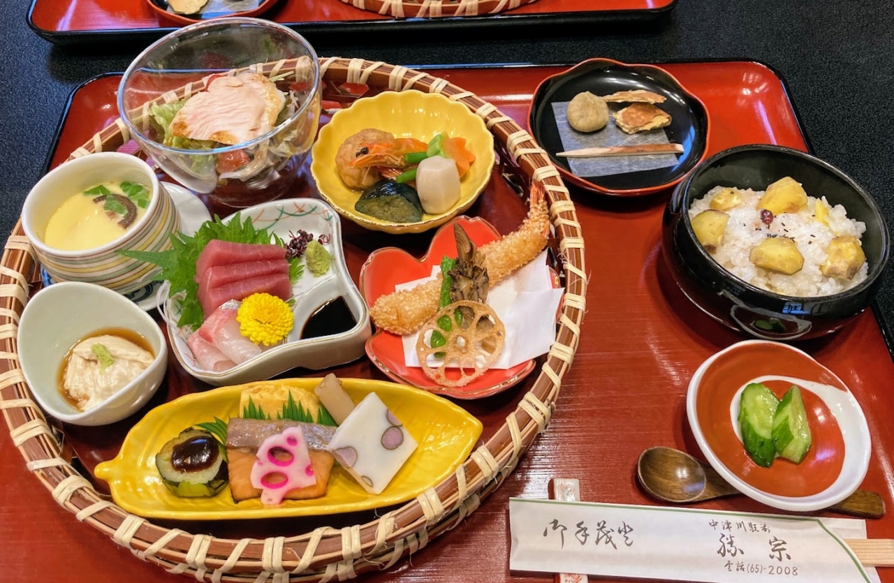 料理はゴロゴロと大きくて甘い栗がたくさん入って、おこわももちもちで大変美味しかったです。