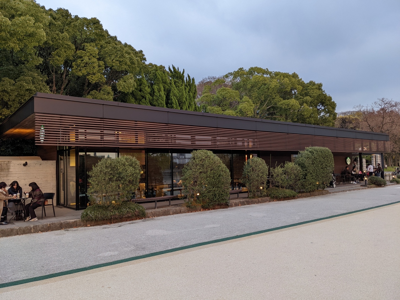 いつものスタバではあるがリージョナルランドマーク店で、こちらは内外壁や家具に木材を使用し公園の景観の維持に努めたデザイン、建設をし、環境に配慮したグリーンストアというのがコンセプト。犬を連れた福岡有閑階級マダムが数多く出没する。