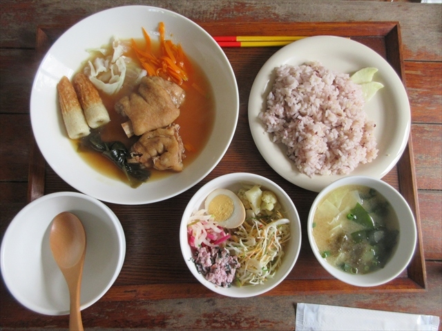 波照間島にある沖縄料理のお店で,カフェもやっています.ちょっと場所が分からずに,かなり探してやっと見つけました.てびち定食を頂きましたが,赤米,サラダ,お味噌汁が付いていました.食後は別料金で黒糖ミルクバナナジュースを頂きましたが,こちらもとても美味しかったです.店内もお洒落で,観光客にはおすすめの場所だと思います.