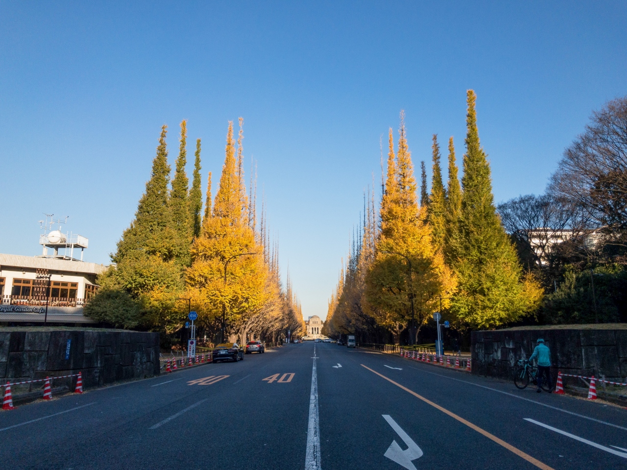 明治神宮外苑にある銀杏並木。毎年銀杏が黄色く色づく頃に催し物が開かれますが今年はコロナの影響で中止。