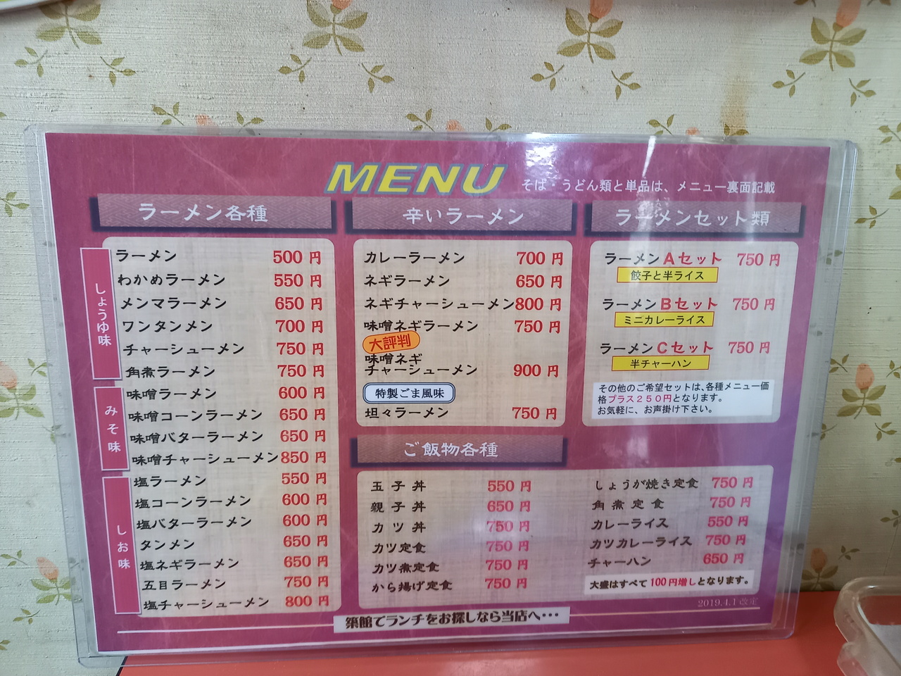 築館の古い商店街の中にあります。カウンター3席、テーブル24席位です。年中冷たい麺をいただけます。今回はネギラーメン650円をいただきました。ネギラーメンは、汁だく、ピリ辛で本当にネギたっぷりのネギラーメンでした。店の中は暖房が着いておらず、寒かったですが、ネギラーメンでポカポカでした。