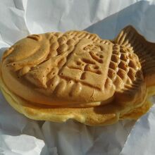 羽生パーキングエリア上り線「鬼平江戸処」の外に面した場所にある「たい焼き」屋さんです。小腹が空いた時にちょうどいい感じで、お店の前には列が出来ていました。たい焼きは、あずき、カスタードの他に、季節限定商品の「安納芋」や、お好みたい焼きがあり、他にも人形焼きなどもありました。ボリューム感のある「お好みたい焼き」が人気のようでしたが、季節限定の「安納芋」のたい焼きを注文しました。たい焼きには「鬼平」の文字が入っていました。車内で食べるのにちょうど良いボリューム感で、美味しかったです。