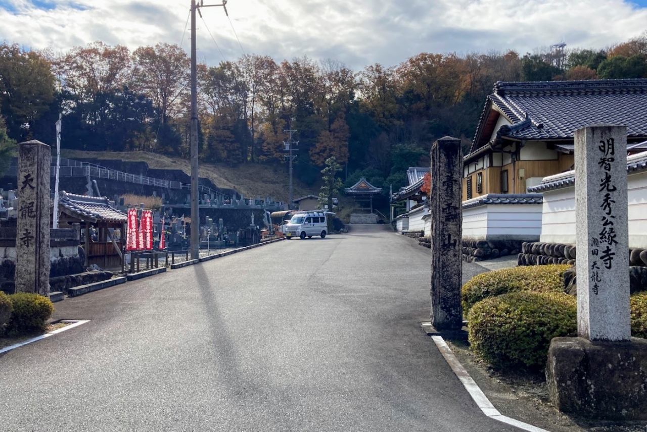 いったん山門を出てから、駐車場側に鐘撞があり、その横に「明智氏歴代之墓所」があります。そこにつながる庭も良かったと思います。