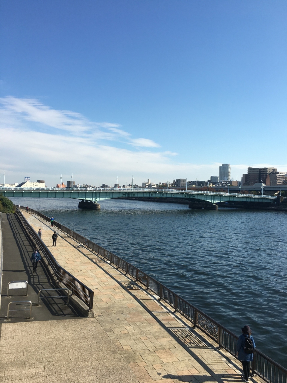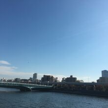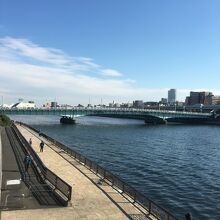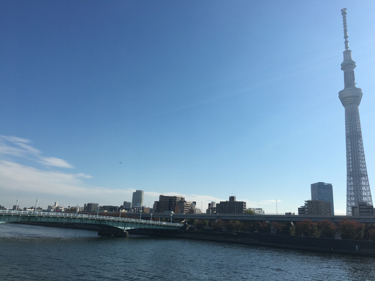 隅田川に架かる橋の一つで、中央は自動車道、左右は歩道でよく見かけるような橋でした。浅草寺周辺の賑わったエリアからは少し離れていますが交通量が多い橋でした。側面は水色で、橋からは東京スカイツリーを見ることが出来ます。