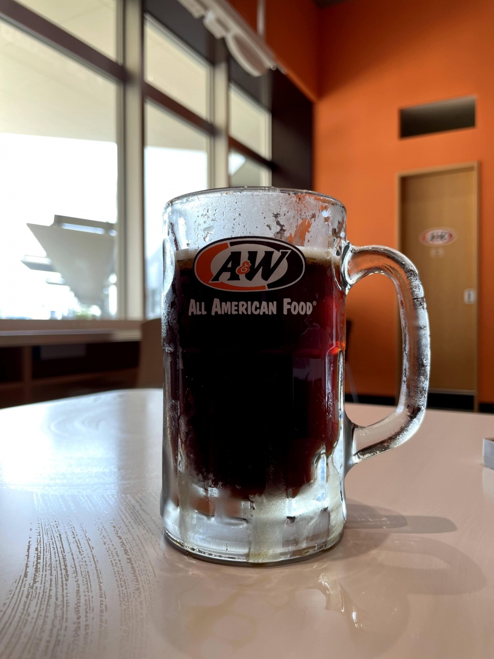 新しく出来たイーアス沖縄にできたA&W。はじめてイーアス沖縄に行ったときに、ランチで利用しました。イーアス沖縄の中には、いろいろな飲食店がありますが、沖縄に来たら滞在中一回は訪れたいA&Wにしました。久しぶりのA&Wのバーガーの味に満足。店舗名物のルートビアのビールジョッキでのお代わりも健在でした。