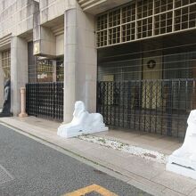 東急東横線・代官山駅から7分ほど、旧山手通り沿いに建っています。鉄の扉入口には一対の白いスフィンクスや上半身裸の像が置かれ、ガラスケースの中にはツタンカーメンのオブジェが飾られています。一般の人は用がない限り鉄の扉内に入ることはできませんが、建物の入口にもオベリスクやファラオ像などが置かれています。外観しか見ることはできませんが、エジプトらしさが感じられる扉と建物周辺です。