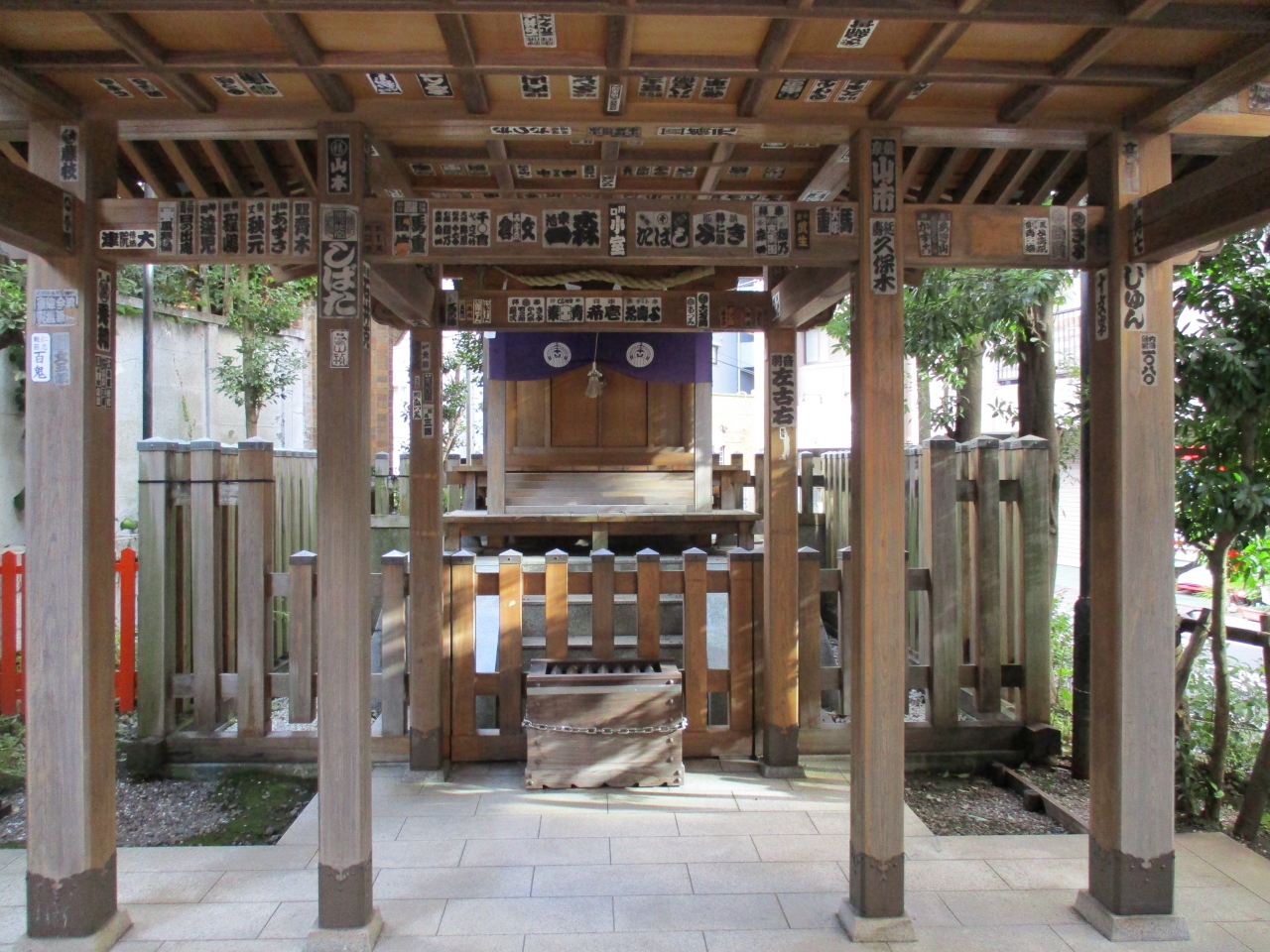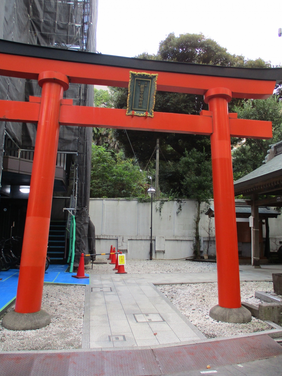 不忍池から池之端方面に散策していた時に、赤い鳥居が見えたので立ち寄ってみました。由来は室町まで遡る由緒ある神社のようです。境内はそれほど広くはありませんでした。木造の小さなお社と由来書きが建てられていて、こじんまりとした稲荷神社でした。