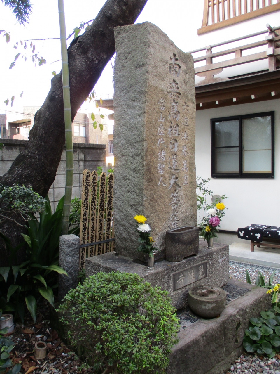 上野池之端の東大病院裏手を散策していた時に立ち寄った寺院です。日蓮宗の寺院らしく、南無高祖日蓮大菩薩と刻まれた立派な石碑が建てられていました。本堂は一般住宅と変わらない造りで、境内に背の高い竹が植えられているのが、お寺らしい雰囲気を感じさせてくれました。