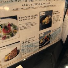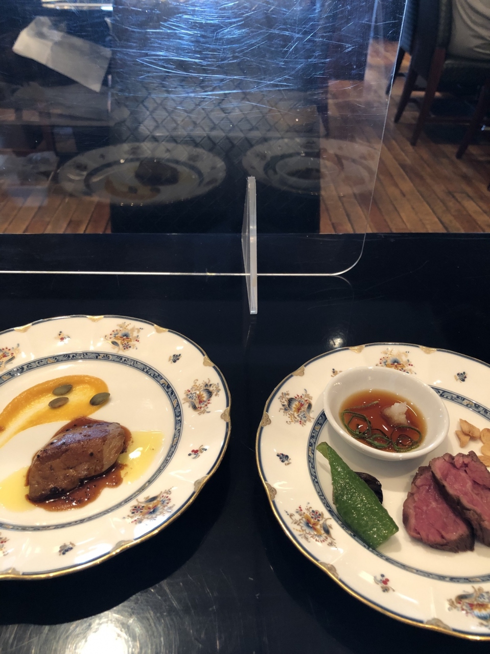 11月ランチビッフェは京都グランビア内4店シェフの料理も各一皿味わえるというランチ。感染症対策はマスクや要所要所にスタッフを配置し消毒呼びかけチェック等とられてました。