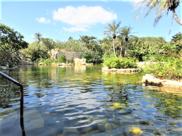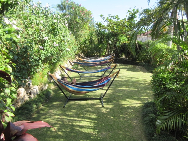 ジャングル風呂の隣はプール、そして、上に上がるとハンモックが数台並んでいます。
