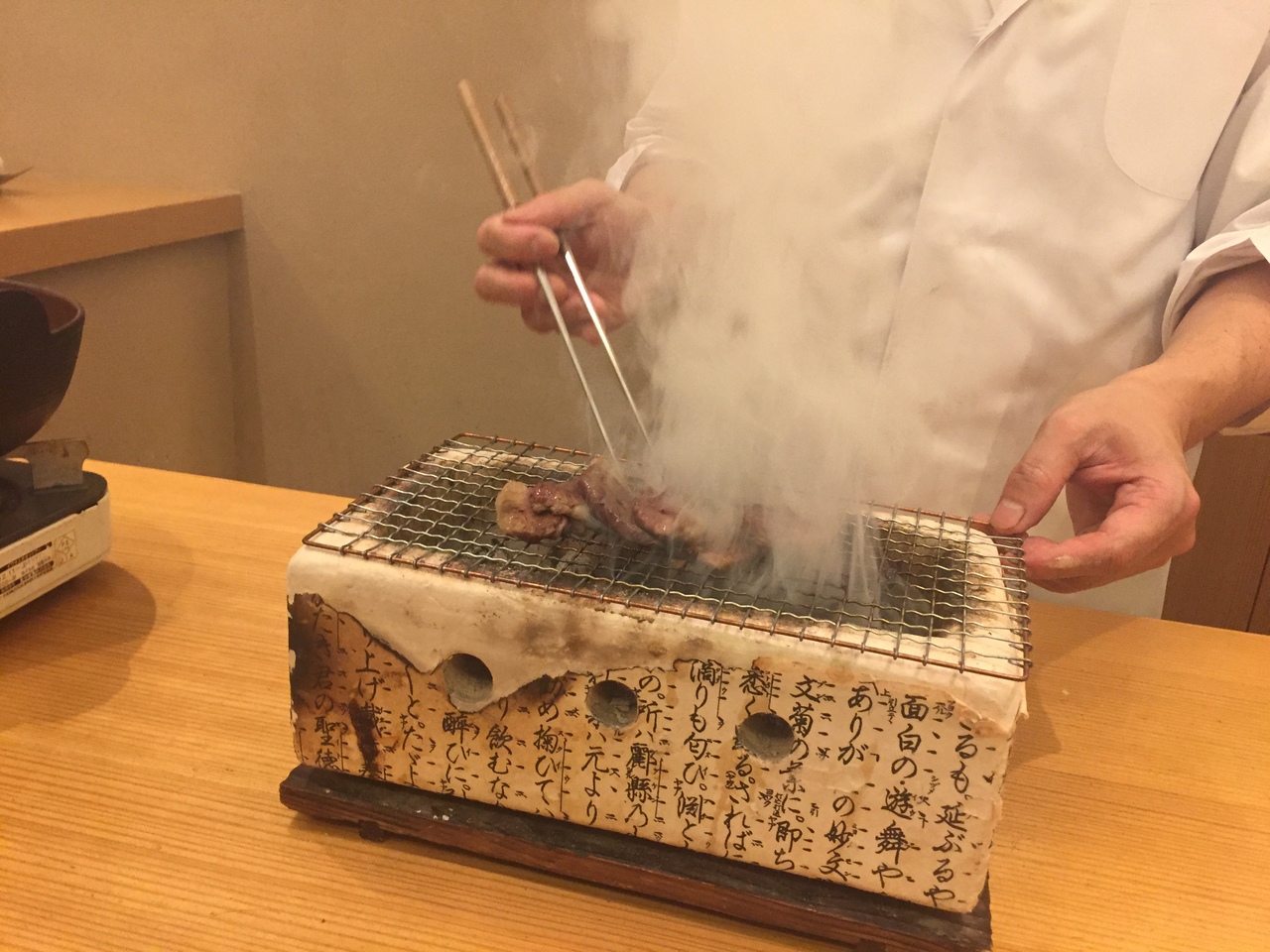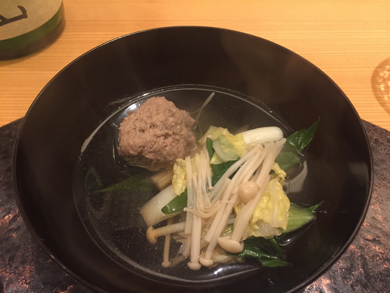 網獲り鴨は 目の前で炭火で焼くのと クリアなスープに。