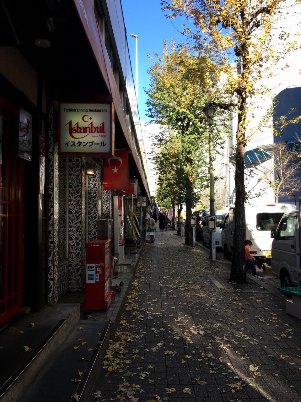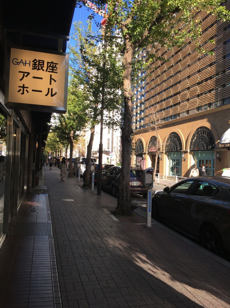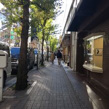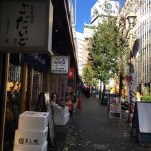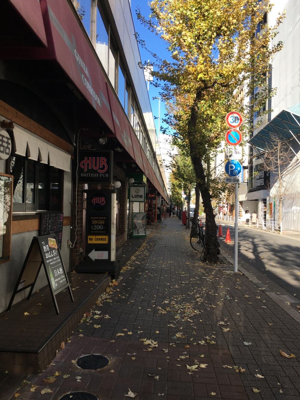 JR線高架下に沿った通りで、みゆき通りから逸れて新橋駅まで続いていました。高架下には店が連なり夜は賑わっていますが昼は比較的静かな場所で、寿司屋は行列でした。店は洒落た高級感がある店が多かったです。歩道と車道の間には木がいくつか立っていました。