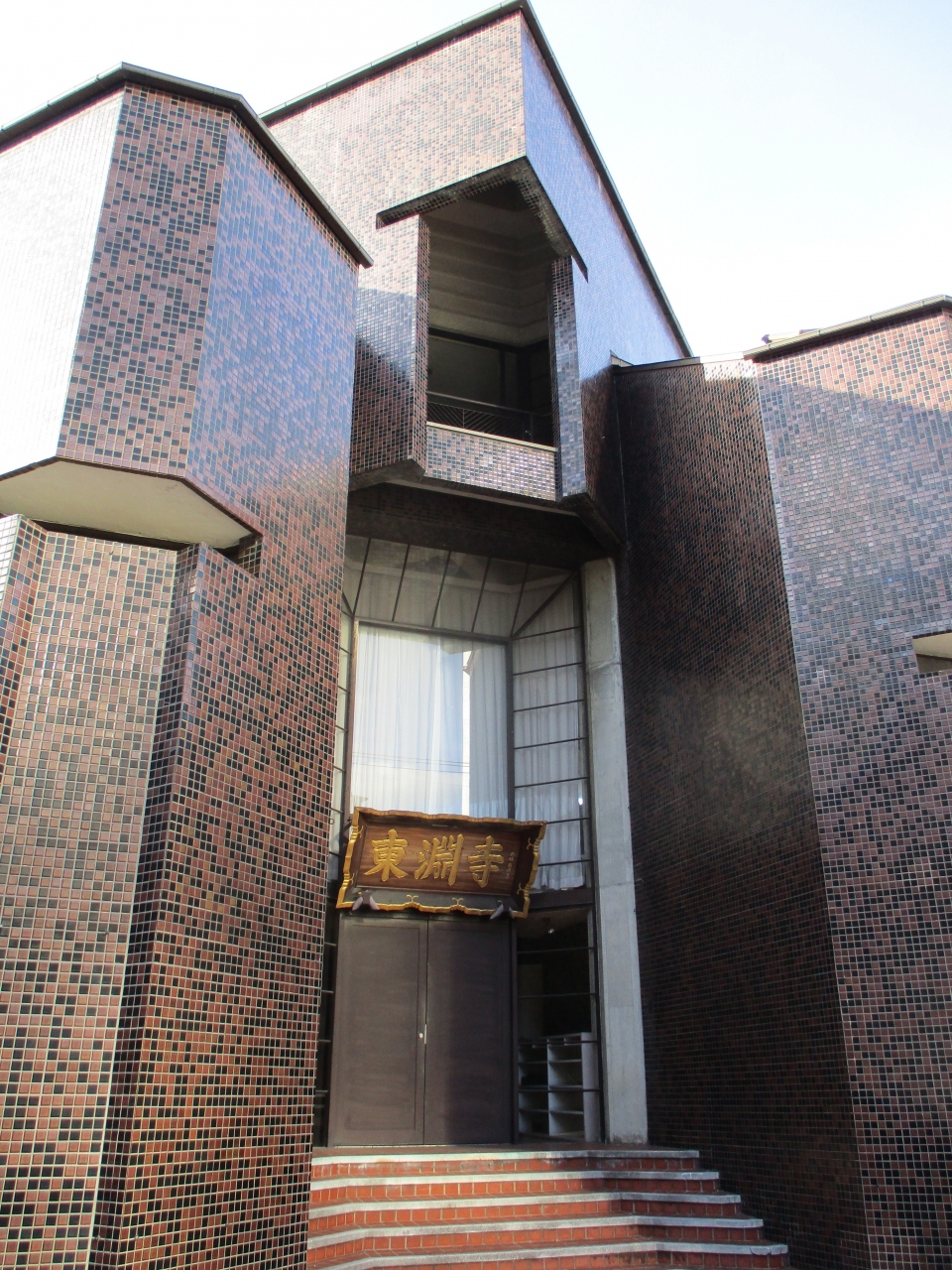 池之端近辺を散策中に立ち寄った寺院です。山門も本堂も近代建築のすばらしいデザインの建物で、寺院名の扁額が掲げられていなければ、お寺だとはとても思えません。きっと有名な建築家が設計したのだろうと思いました。セレブの邸宅か美術館のような雰囲気のお寺でびっくりしました。