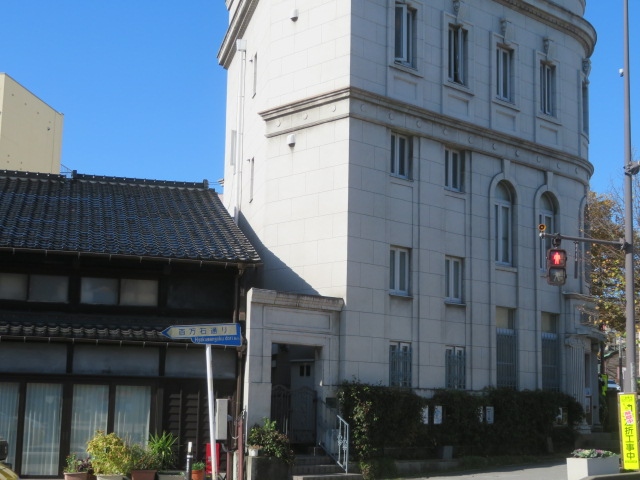 金沢らしい名称の大通りで、金沢城公園の南側です。固まってあるわけではありませんが、金沢らしい古いお宅が結構あります。必見は、旧石川銀行の建物を使用した金沢文芸館です。珍しく丸みを帯びた建築物で、華麗な雰囲気です。国指定の有形文化財です。