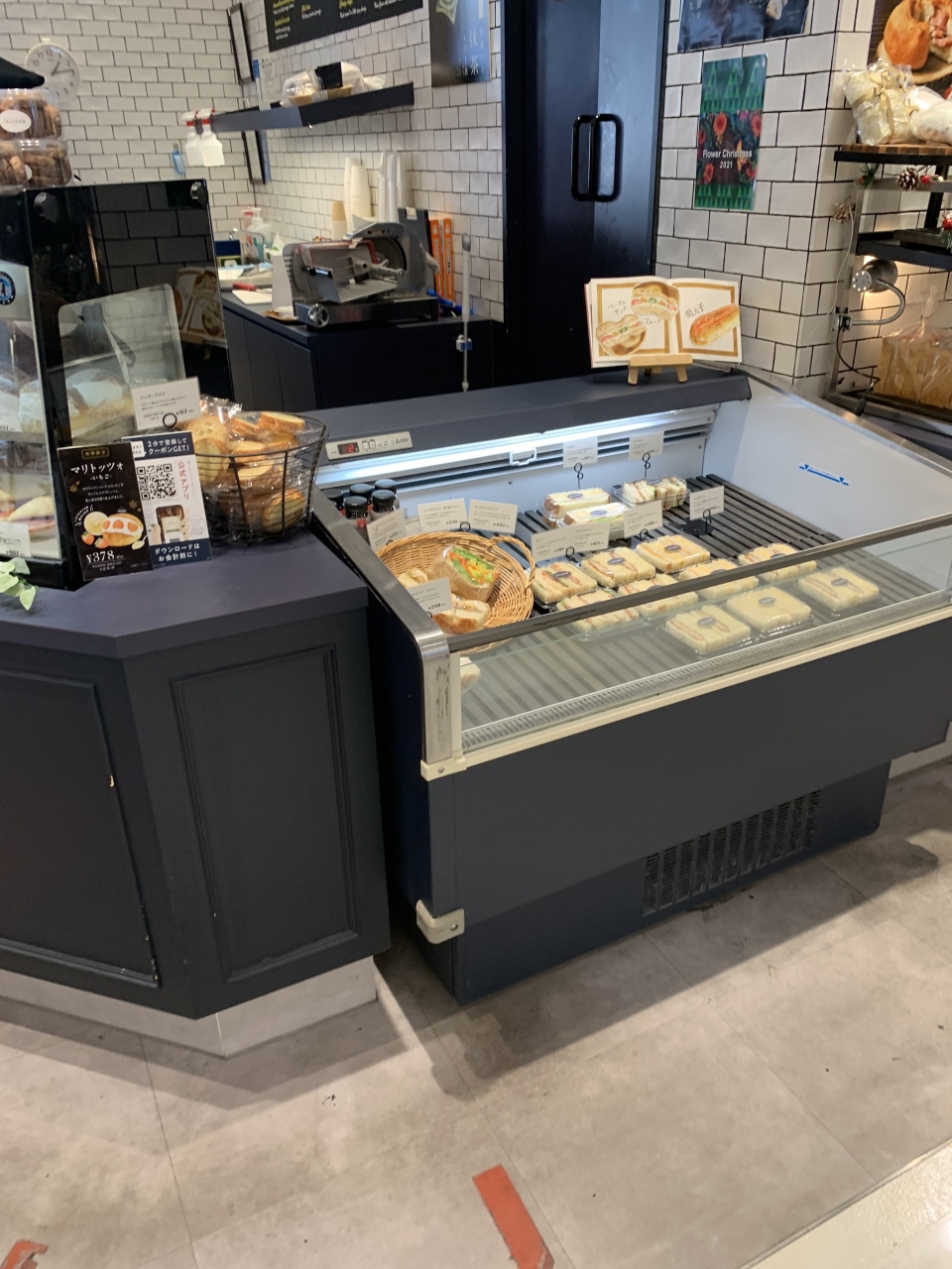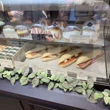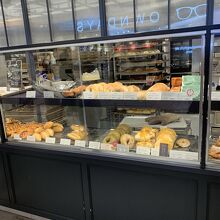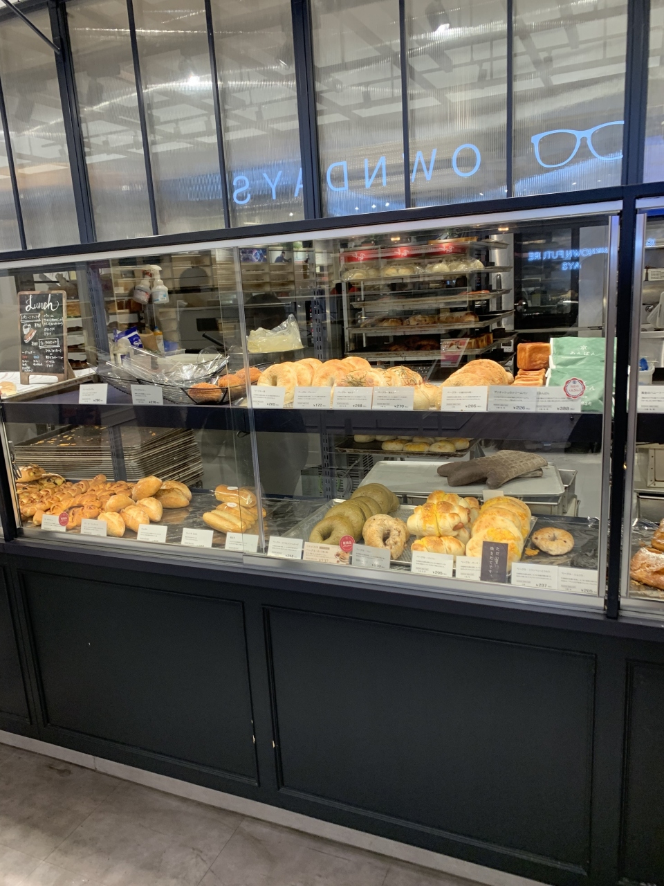 ガラスショーケースには「ベーグル」など…美味しそうなパンが 並んでいました