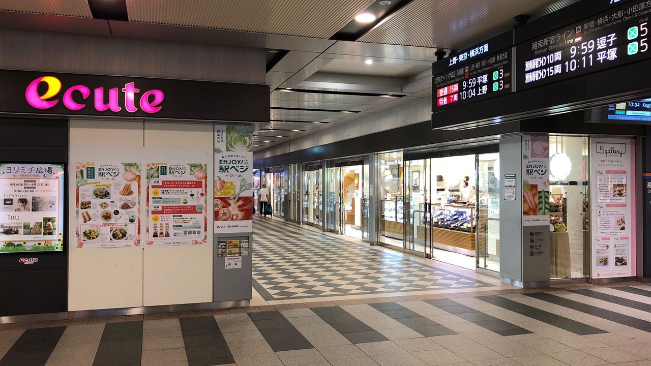 赤羽駅の改札内にある商業施設です。全50店舗なので、エキュートの中では中規模ぐらいだと思います。お気に入りは、朝6:30からオープンしている「ベックスコーヒーショップ」です。お得なモーニングメニューもあります。
