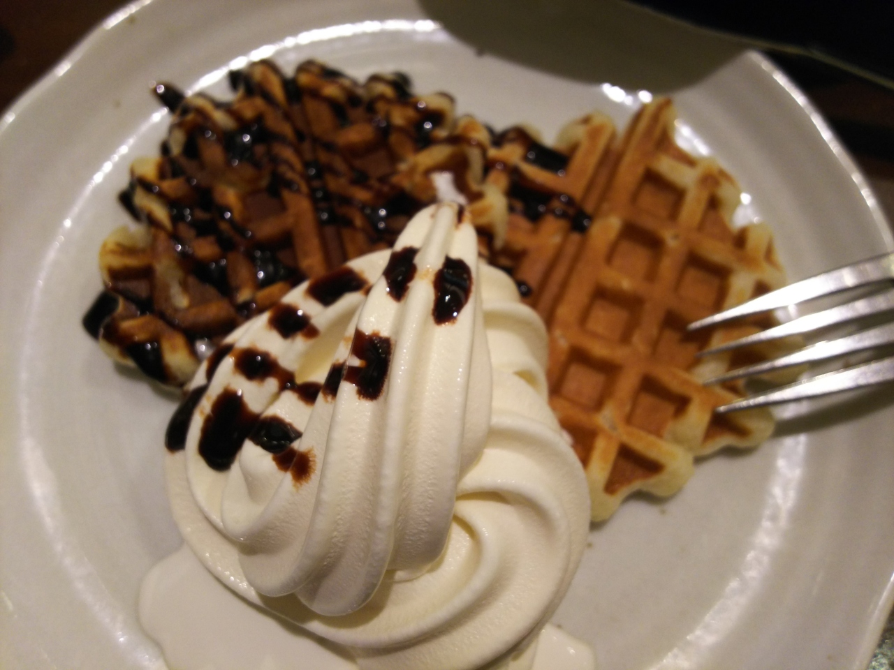 手作りでワッフルが作れて、ソフトクリームも食べることが出来て、満腹でした。