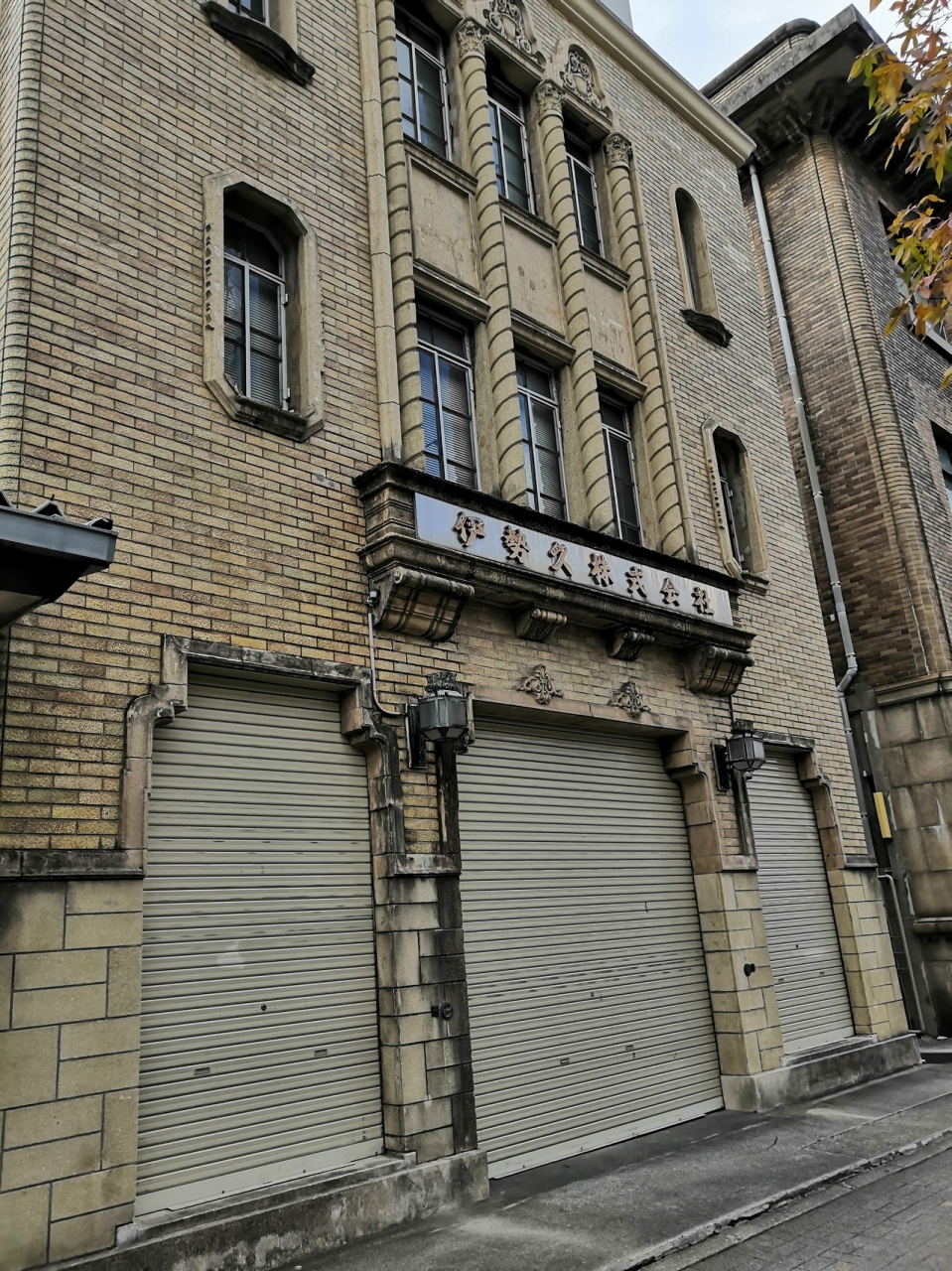 市役所近くの大津通沿いにあるレトロ建築です。18世紀に薬種問屋として創業したお店ですが、こちらの建物自体は昭和になってから建てられたものです。螺旋系のデザインの入った柱がなかなかオシャレな感じがしました。